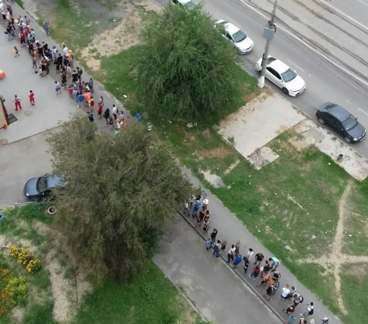 Жители Волгограда выстроились в километровую очередь за дешевой пиццей. Некоторым пришлось простоять в ожидании еды четыре часа, а самые предприимчивые торговали местами в очереди.