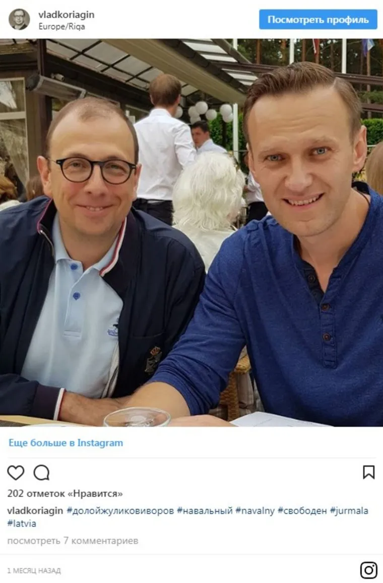 Алексей Навальный отправился в Латвию в середине июня, рассказывает . 16 июня на его личной странице в Instagram (деятельность запрещена в РФ)-аккаунте опубликована фотография, сделанная в Риге. «Рига, кстати, очень классная. Я тут первый раз», — делится со своими подписчиками оппозиционер. В этот же день в личном аккаунте президента компании по организации международных перевозок Baltic Travel Group (BTG) Влада Корягина появляется фото с Навальным.