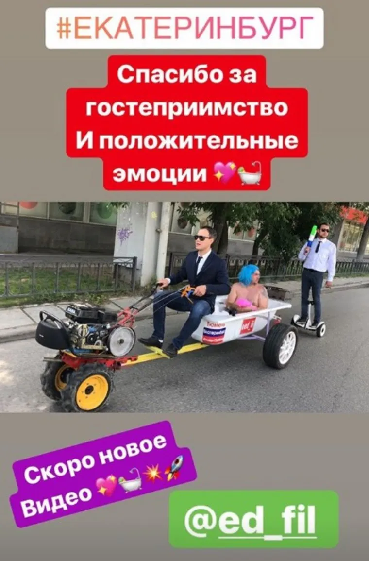 Решение о посещении Екатеринбурга было принято после аналогичной поездки по Тюмени. Видео набрало 500 тыс. просмотров и множество позитивных комментариев. Филиппова уже пригласили в Москву на Первый канал сниматься в программе «Видели видео» 8 августа. Следующий город для оригинальной поездки в ванне блогер не назвал: «Пока это секрет».