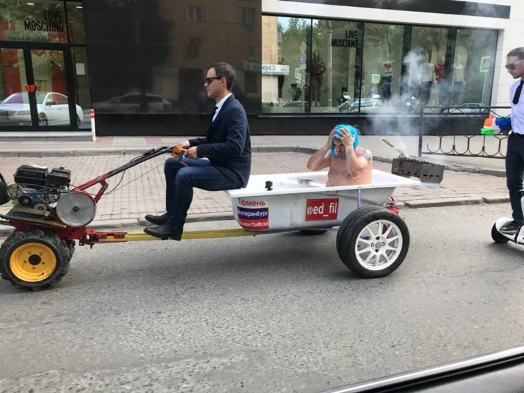 Тюменец прокатился полуголым в ванне по Екатеринбургу. ФОТО