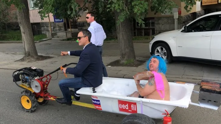 Тюменский блогер Эдуард Филиппов выбрал для путешествия по Екатеринбургу необычный транспорт — он прокатился по уральской столице в ванне. Таким образом мужчина решил порадовать горожан.
