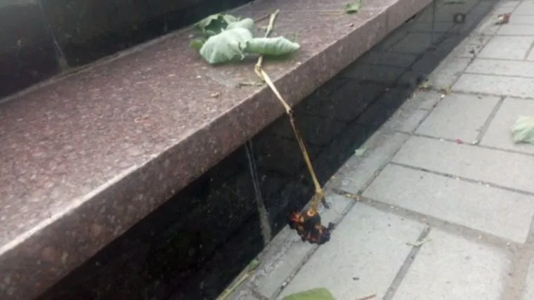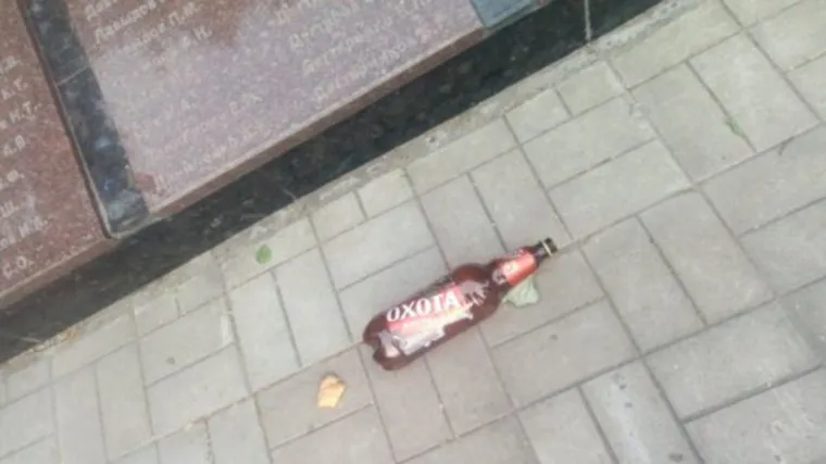 Кто-то сжег на мемориале все цветы, расшатал плиты, на горелке «Вечного огня» остались угли и сажа — на ней жгли венки. Рядом с горелкой на тротуарной плитке следы автомобильных шин — кто-то приехал сюда развлечься прямо на машине. Барельеф с лицом воина измазан сажей, сообщает местное издание « . Кто-то нарисовал маркером зрачки на глазах барельефа, сажей сделали «подводку» губ. После себя вандалы оставили пустые пивные бутылки.