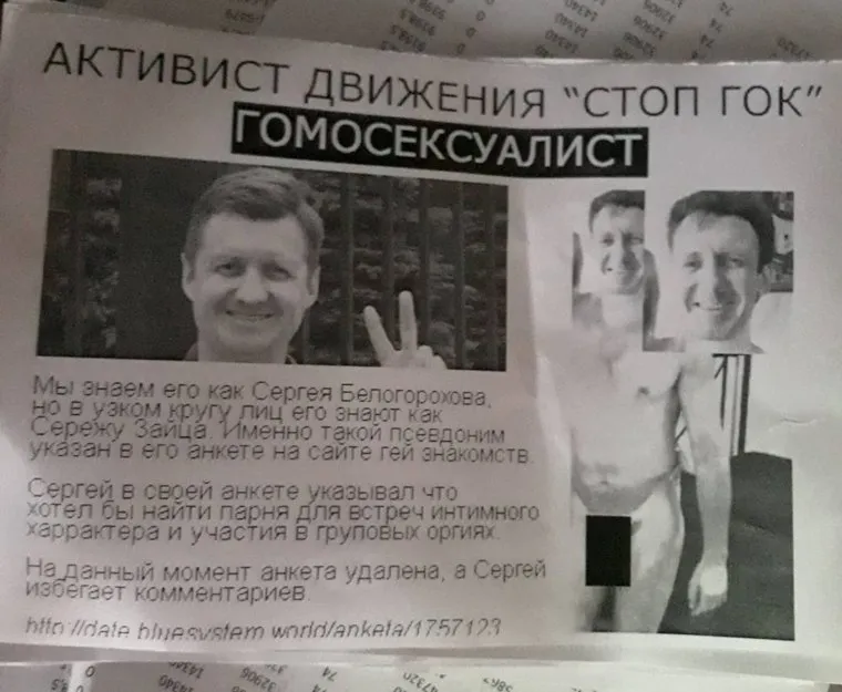 Неизвестные разложили в почтовые ящики на северо-западе Челябинска листовки с обвинением в гомосексуализме известного эколога Сергея Белогорохова. Как сообщил «URA.RU» активист, он связывает это со своей правозащитной деятельностью.