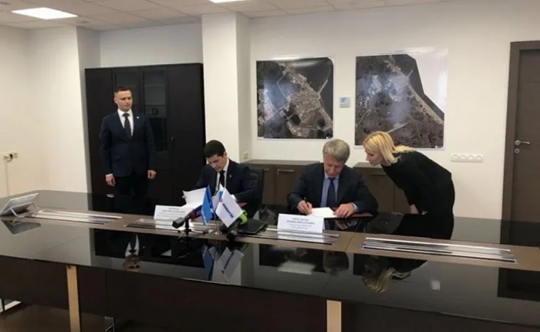 Дмитрий Артюхов (за столом сидит слева) и Леонид Михельсон поставили подписи под дополнительным соглашением о двустороннем сотрудничестве