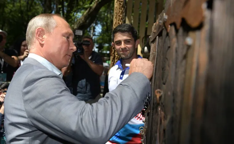 Путин пообщался с участниками Северо-Кавказского форума. Самым интересным моментом встречи был разговор с одним из волонтеров. Тот вспомнил старую осетинскую традицию, по которой уважаемый гость в «знак дружбы» оставлял на двери свою подпись. Президент не мог отказать в просьбе участникам «Машука» и расписался на двери XVI века, которую восстановили волонтеры из Северной Осетии, уточняет .