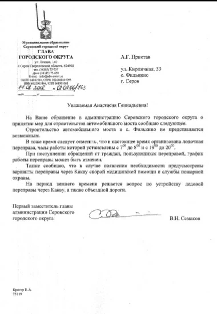 Уральцы крайне возмущены решением властей. Селяне подняли тревогу уже давно, когда мост начал разваливаться на бревна. Местная жительница Анастасия Пристав даже обратилась за помощью к властям. Однако в администрации Серовского городского округа заявили, что «строительство моста не представляется возможным». Но предложили выход — людям на два часа в день выдали лодку. «А дальше живите, как хотите», — сетует Пристав. Согласно документу за подписью замглавы администрации Вячеслава Семакова, переправа будет работать всего два часа в день. Зато «график может быть изменен», если граждане об этом попросят.