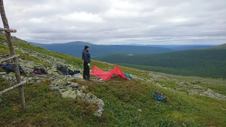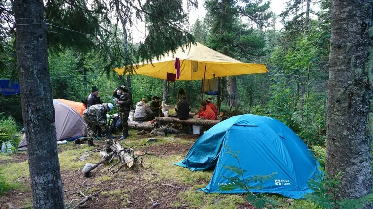 Ориентировочно в том месте, где установлен красный тент, стояла палатка дятловцев