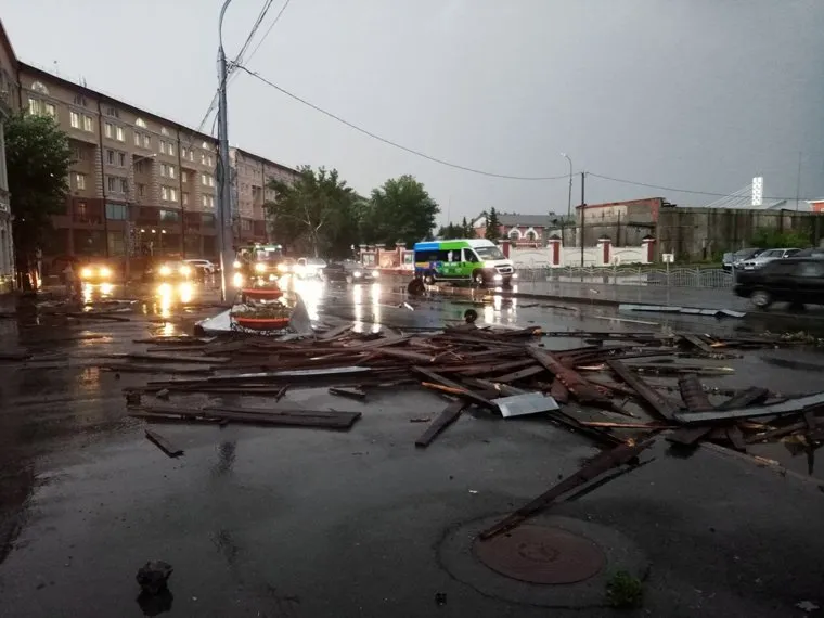 Град, гроза и сильнейший ветер привели к серьезным разрушениям в Тюменской области. Повалены рекламные щиты, автобусные остановки, с корнем вырваны деревья. Разорваны линии электропередачи. Последствия разбушевавшейся стихии устраняют до сих пор. Одно из самых страшных происшествий произошло на развязке Федюнинского — Мельникайте, где со здания сорвало крышу и унесло ее на середину трассы.