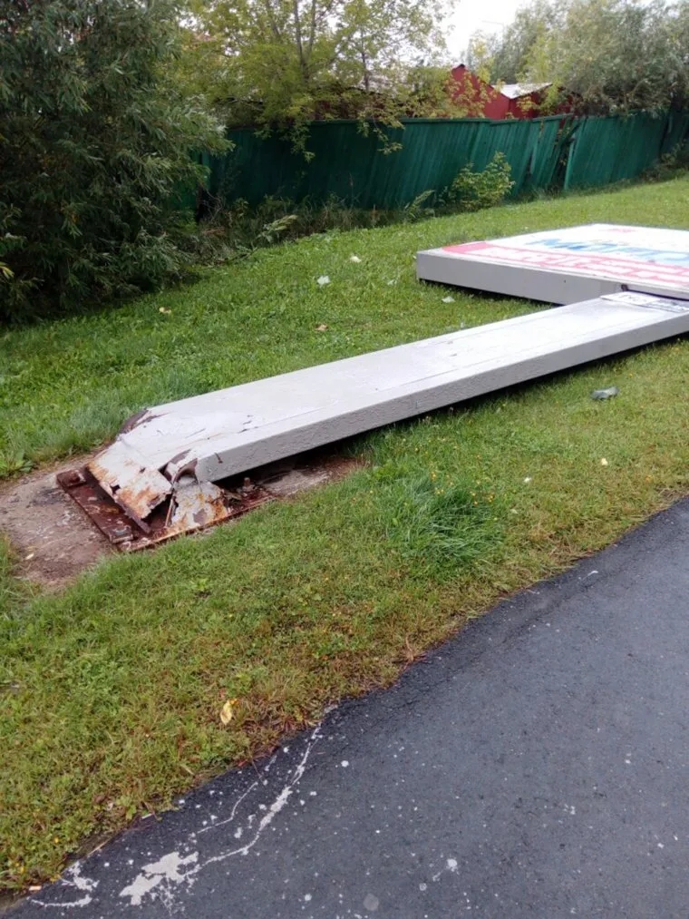 Ветер сломал старую рекламную металлоконструкцию
