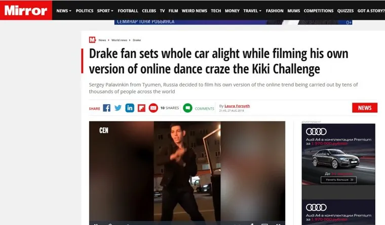 Видеоблогер из Тюмени Сергей Палавинкин стал героем публикации британского издания Mirror. Его ролик для модного сетевого флешмоба впечатлил британских журналистов.