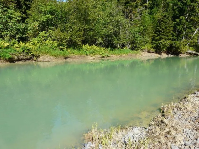 Реке Шегультан, где раньше водился хариус, загажена серой взвесью
