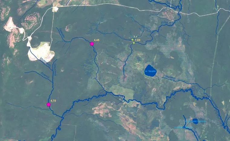 «У карьера берут начало реки Тамшер, Ольховка, Банная и Черная. Их pH 4.5-4.8. И зимой, и летом. Одним цветом, — пишут сотрудники заповедника. — Реки Банная и Черная бегут в реку Тальтия, на север, в Ивдельский район… Реки Тамшер и Ольховка бегут в Шегультан. На него решили посмотреть мы. И пожалели о своем решении. Мы сразу вспомнили рекомендацию местного лесничего „не совать свой нос не в свое дело“, и поняли, что свой нос в ЭТО ДЕЛО совать действительно вредно. И не только нос, но и руки, ноги, и иные части души».