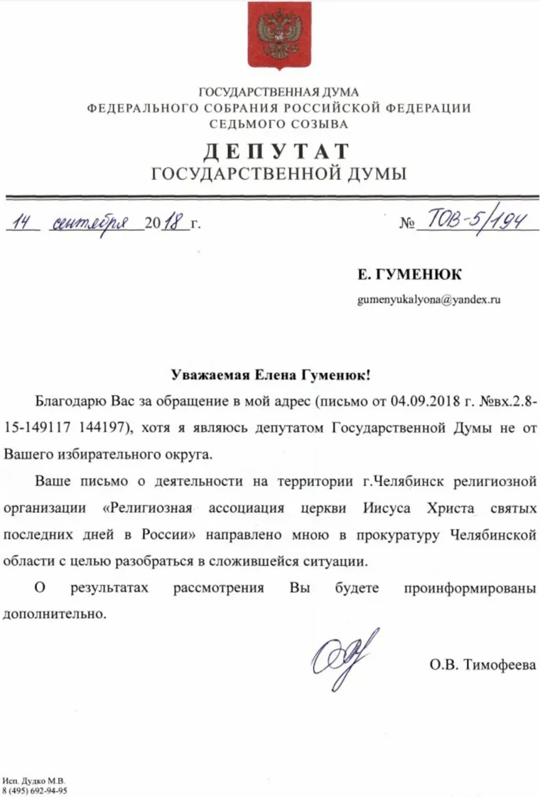 Челябинка Елена Гуменюк ранее направляла аналогичное обращение в Общественную палату области. Бдительная горожанка написала, что мормоны выкупили бывший ресторан «Лили» по улице Елькина за горсадом имени Пушкина и активно создают свой миссионерский центр, чтобы, «используя разработанные в США и поставленные ими на поток технологии манипулирования сознанием, вести вербовку населения в свои ряды».