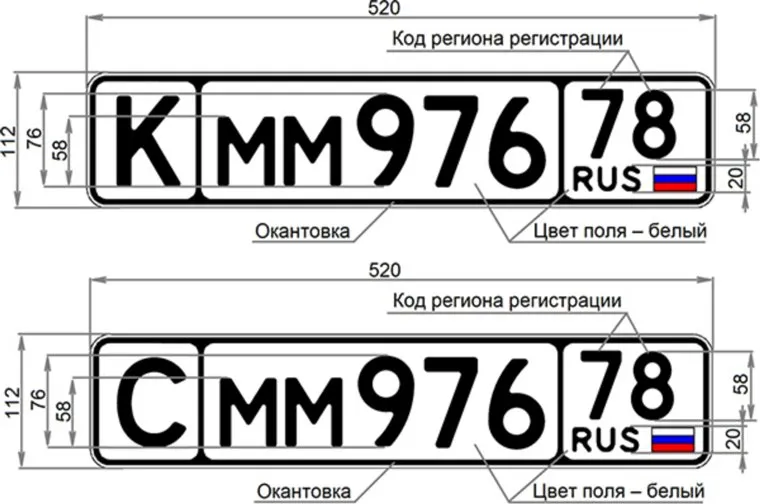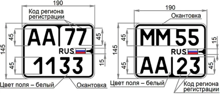 Номера для мопедов будут как мотоциклетные, но с иным набором цифр и букв. Например — ММ55АА77RUS. Отдельные знаки получат квадроциклы, а также спортивные машины и ретроавтомобили. У первых на знаке будет буква «С», отделенная чертой от остальных символов, а у вторых — буква «К». Кроме того, новый ГОСТ снимает запрет на сверление дополнительных отверстий на номерах. Правда, они не должны будут затрагивать символы, флаг и код RUS, уточняет газета.