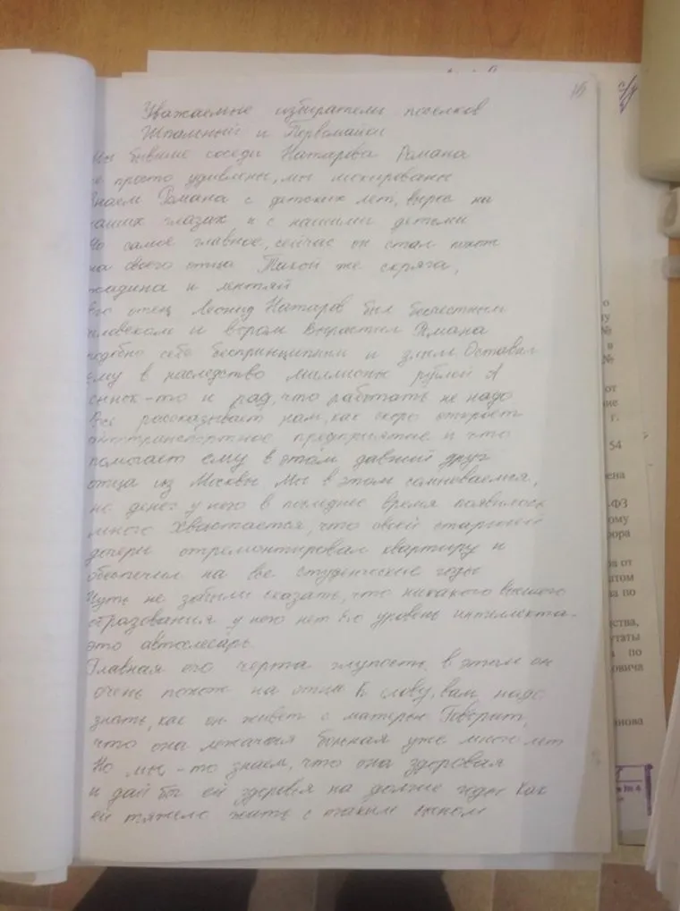 Изначально Светлана Кокшарова (она баллотировалась от «Единой России») направила заявления в территориальную избирательную комиссию (ТИК) и полицию. Выяснилось, что речь идет о данной рукописной «листовке». Причем в тексте звучат призывы поддержать Кокшарову, а не Натарова — эсер представлен в негативном свете. Сам Натаров на суде заявил, что никогда не заказывал подобных «листовок», а материал сфабрикован. Однако мировой суд все же счел Натарова виновным. В ближайшее время Пермский краевой суд рассмотрит уже его жалобу.