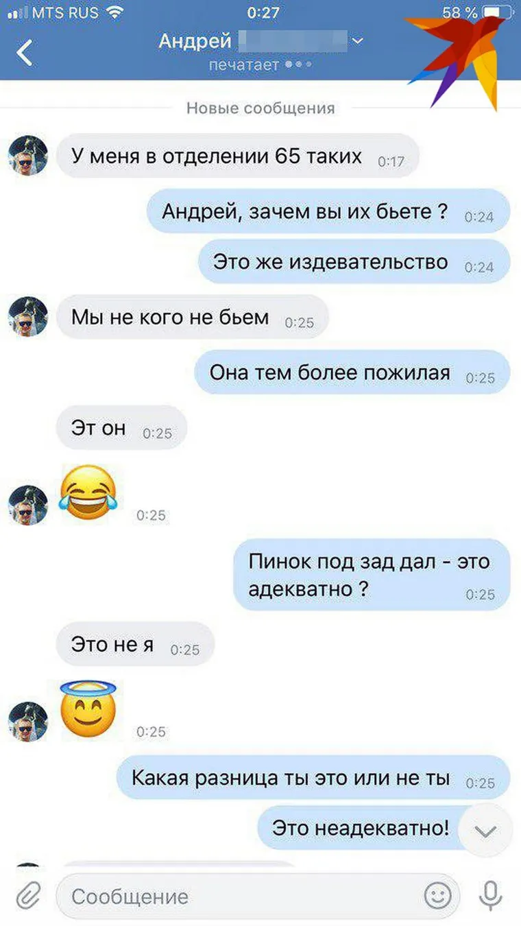 В распоряжении СМИ появилась переписка одного из санитаров магнитогорской психбольницы, участвовавшего в издевательствах над пожилым пациентом. Ее предоставила девушка, которая и передала скандальный видеоролик журналистам.