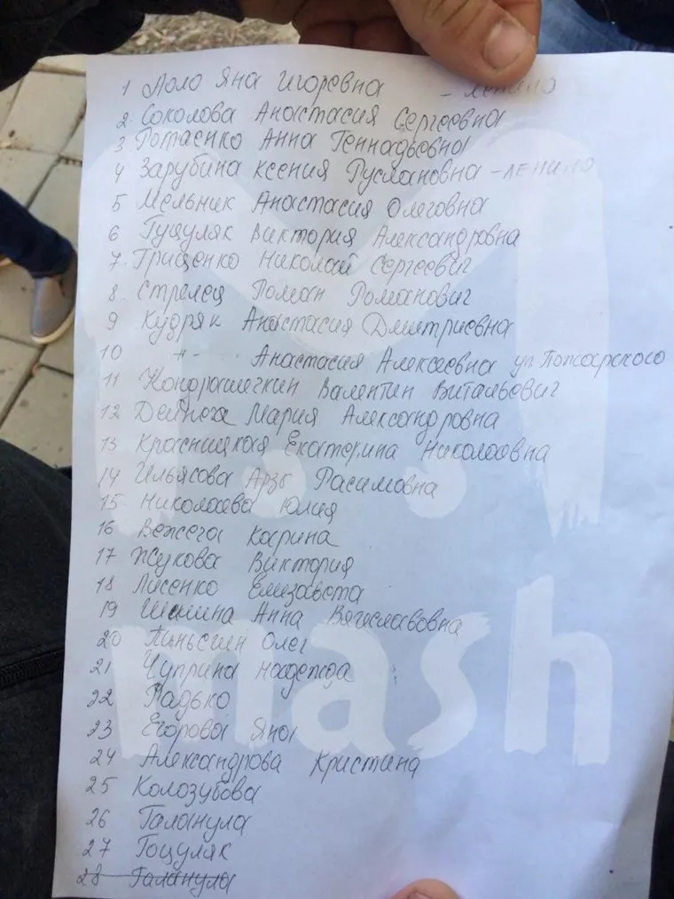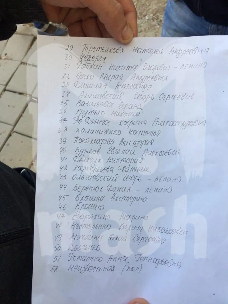 Такой список врачи больницы в Керчи показывают родственникам пострадавших, которые ищут своих родных, сообщает Mash