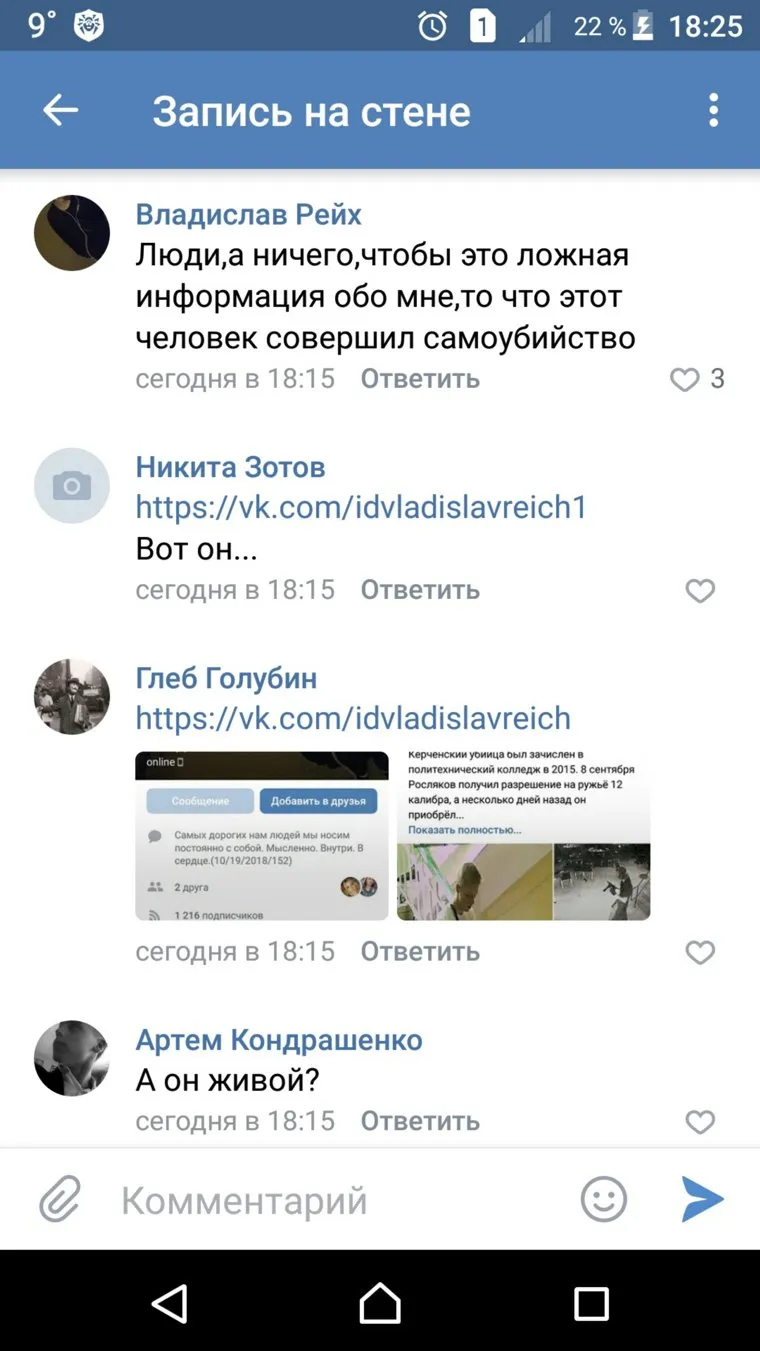 18:02 Глава Крыма Аксенов: нападавший — Влад Росляков — застрелился в библиотеке колледжа, там же нашли его тело.