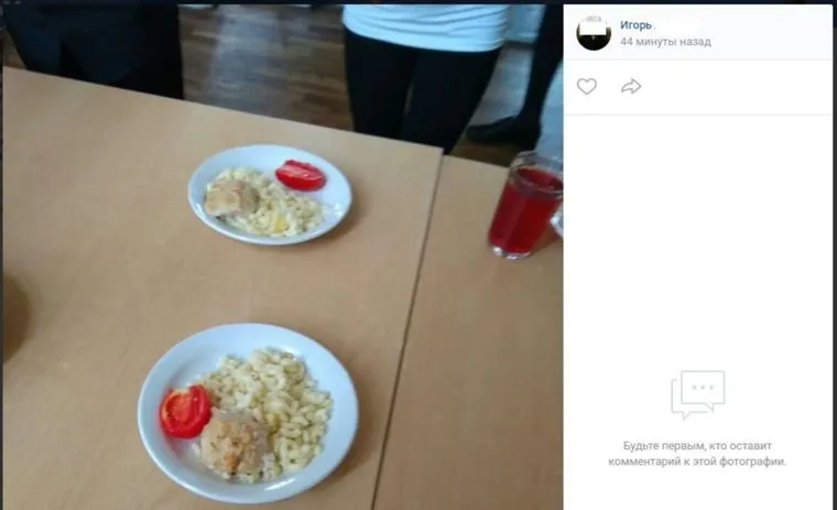 По словам Ирины, директор школы никак не реагирует на жалобы. Другой пользователь, по имени Игорь, опубликовал фотографии школьных блюд: «На помидорах плесень на разрезе, плохо видно, но можно разглядеть».