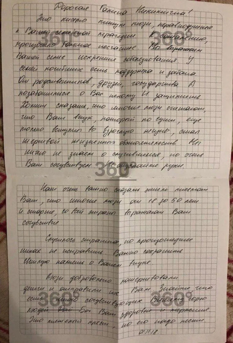 Погребение тела юноши произошло две недели назад. Сочувствующие родственникам юноши собрали на погребение студента 101 тысячу рублей. Также люди написали матери студента письмо, в котором называют Владислава «жертвой жизненных обстоятельств», а саму женщину призывают не опускать рук и терпеливо нести «этот тяжелый крест», передает телеканал «360» .