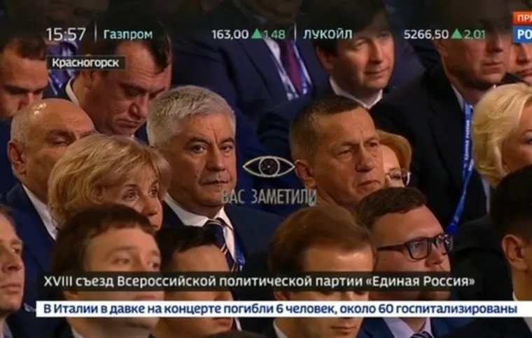 В соцсетях активно распространяют скриншот эфира телеканала «Россия». В сюжете как раз рассказывалось о съезде, а на кадрах виден человек, поразительно похожий на Владимира Колокольцева.