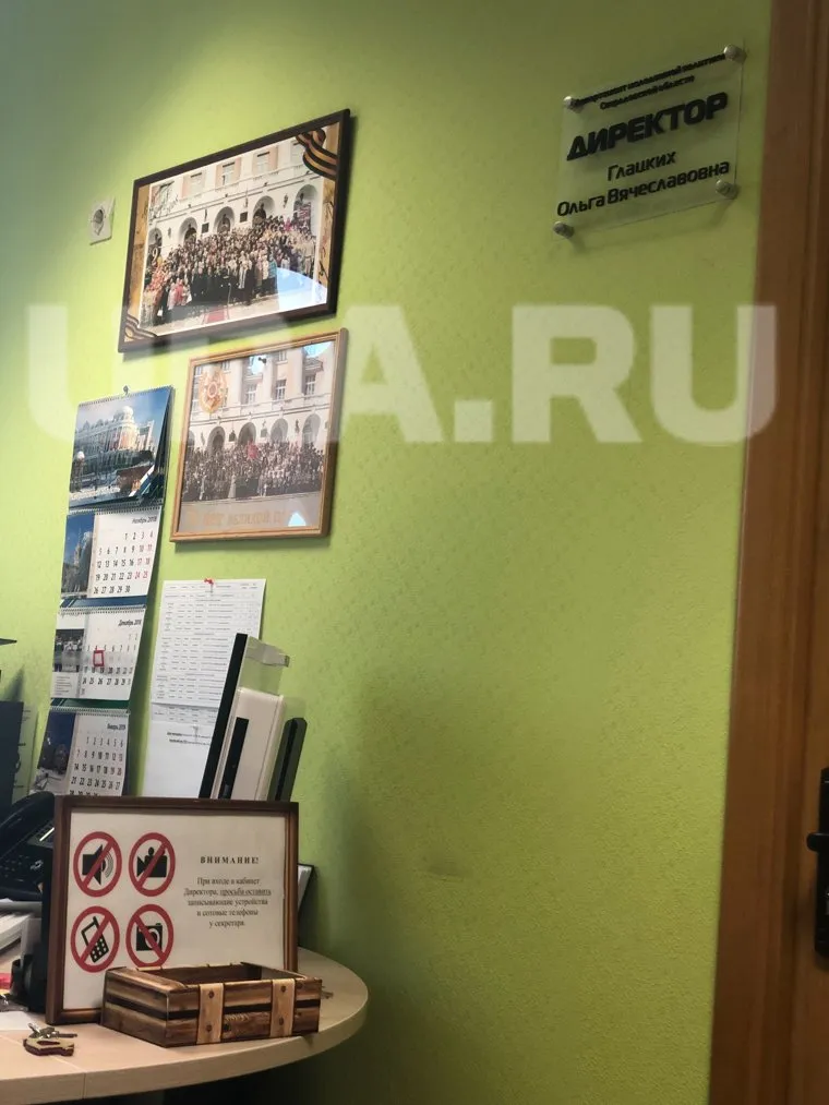 Перед входом стоит табличка с требованием оставить телефон у секретаря