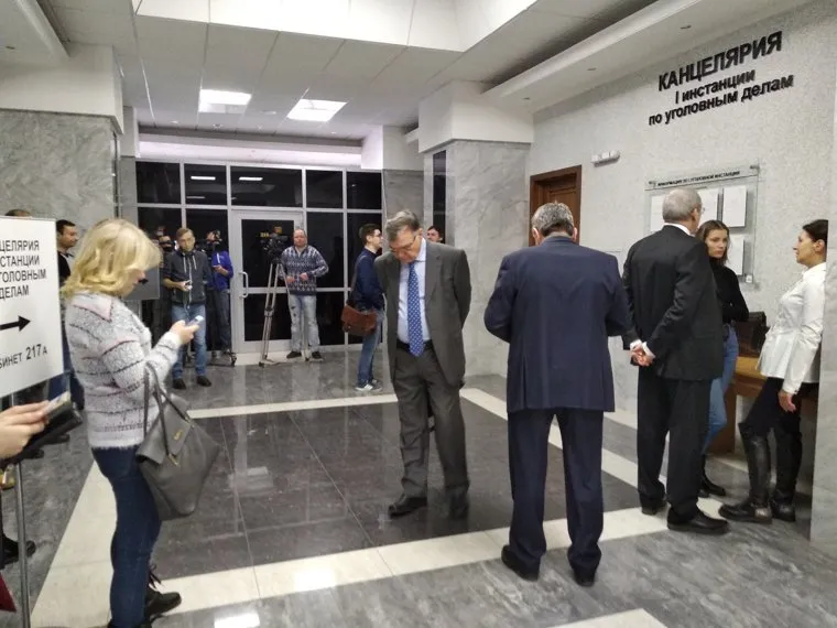 Колесников вместе с племянником Миронова ждет рядом с залом, в котором рассматривается апелляционная жалоба на арест Миронова. Оба мужчины категорически отказываются общаться с представителями прессы и даже представляться. Также в суд пришли супруга и дочь арестованного железнодорожника Миронова.