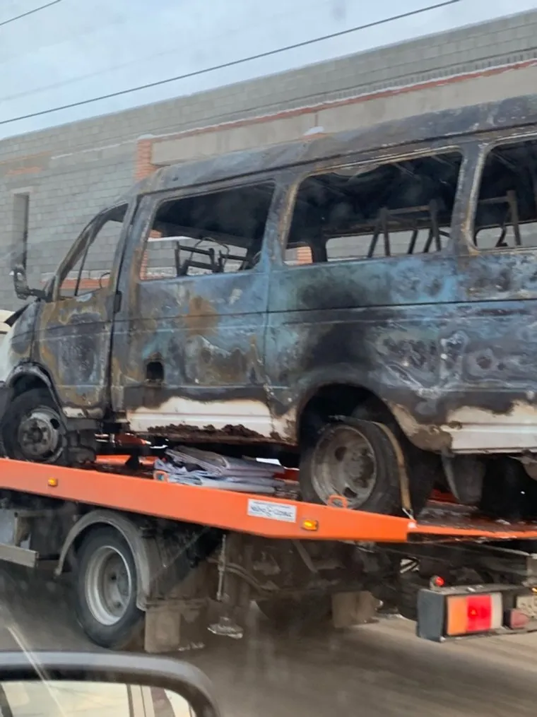 Очевидцы сняли, как эвакуируют сгоревшую «Газель». Следов выстрелов на ней нет