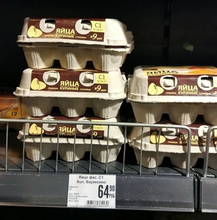 В российских магазинах продают по девять яиц вместо привычного десятка. «Жду, когда на бензин будут цены за 950 грамм» ФОТО