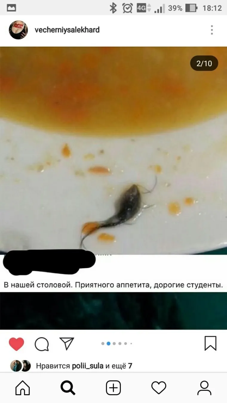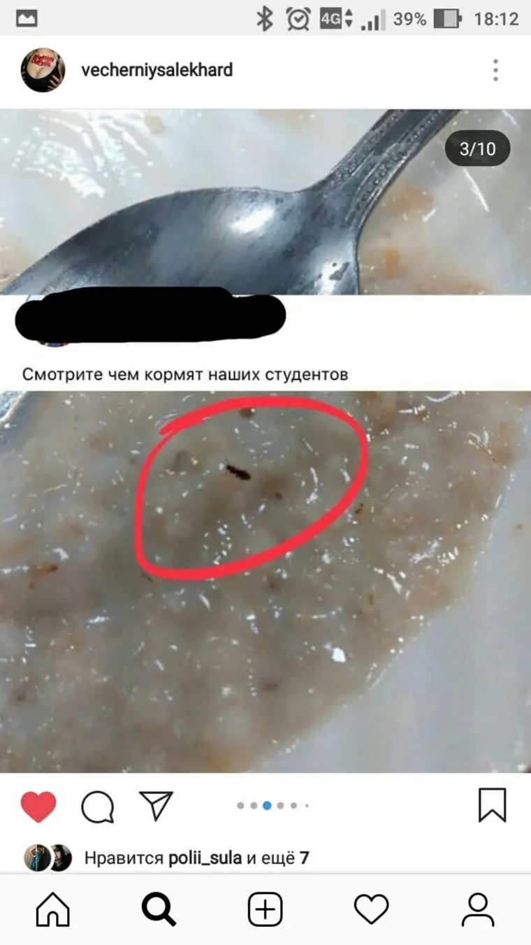 В ответ на него посыпался шквал негативных комментариев. Комментаторы доказывают факты нарушений в столовой фотографиями и рассказывают, что все это происходит систематически и уже не первый год. Обращения к руководству столовой ничего не меняли, и лишь после того, как волна недовольства дошла до соцсетей, качество приготовляемой в студенческой столовой пищи заметно улучшилось.