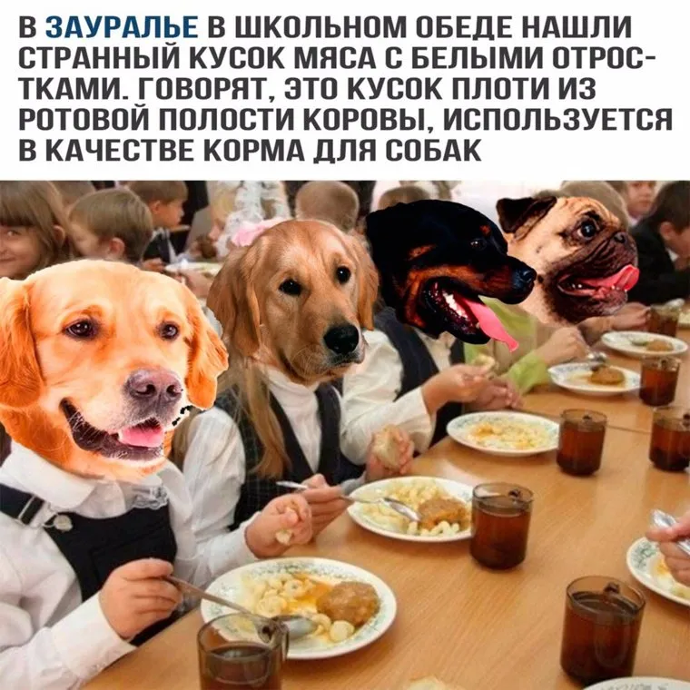 О странном куске мяса, обнаруженном в тарелке с супом школьниками Юргамыша, ранее сообщало «URA.RU». Пользователи соцсетей выдвинули свои версии того, что предложили детям на обед: говяжьи губы или щеки, мясо ежа и даже «доисторическое животное». Областной департамент образования потребовал от властей района провести проверку питания детей в школах. Позже стало известно, что школьным обедом заинтересовались следователи , прокуратура и Роспотребнадзор. Ситуацию в юргамышской школе взял под контроль депутат Госдумы Александр Ильтяков. Ученый Павел Косинцев предположил , что на фото — внутренняя поверхность ротовой полости коровы, однако в составе тушенки этого быть не должно.