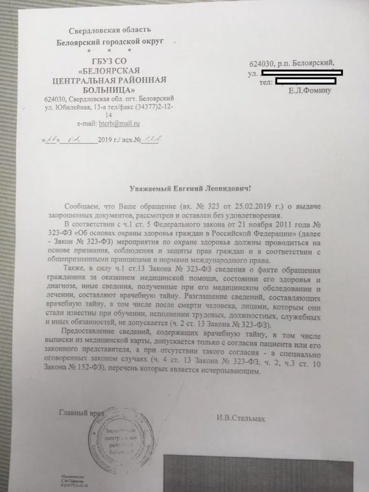 «Дома ему стало плохо, и он обратился в Белоярскую ЦРБ. У него на руках не было паспорта, но имелись медполис и военный билет, который по закону на время службы в армии для солдата является основным документом и заменяет паспорт. Терапевт Нина Соловьянова отказалась принять Алешу без паспорта, мол, раз солдат, иди в свой военный госпиталь. На следующий день дома сын потерял сознание, и на „скорой“ его привезли в больницу. Соловьянова была вынуждена его принять и, услышав у него кашель, предположила ОРЗ. Выписала направление сдать на следующий день анализы. Он ей сказал про тромб, но она это проигнорировала. А на следующий день Алеше снова стало плохо, и он умер прямо в машине скорой помощи», — рассказала «URA.RU» Татьяна Фомина, мама солдата.