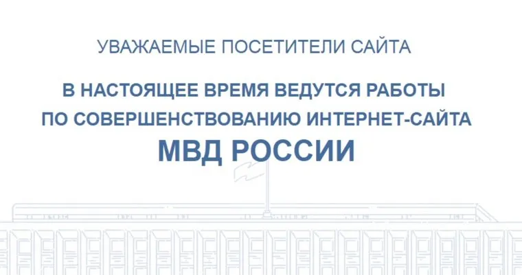 На компьютерных серверах МВД России произошел сбой. Сайты ведомства ушли на техническое обслуживание, предоставление услуг приостановлено.