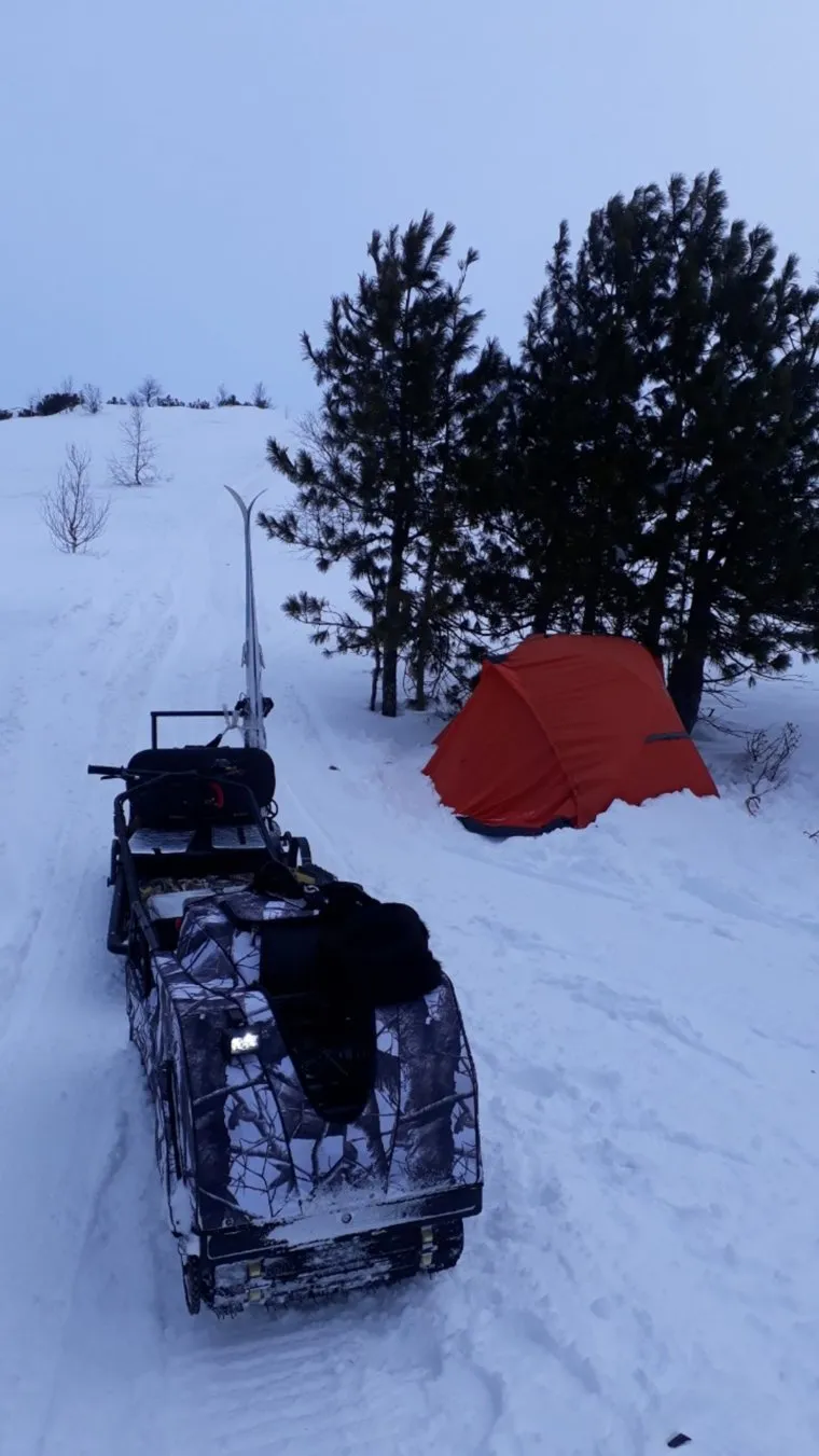 Мотособака и палатка Сергея Власова на перевале Дятлова