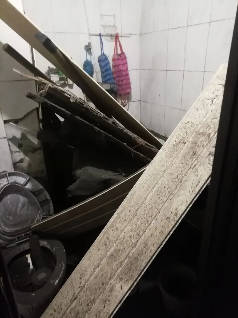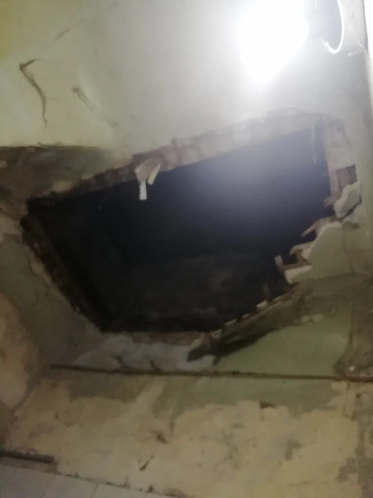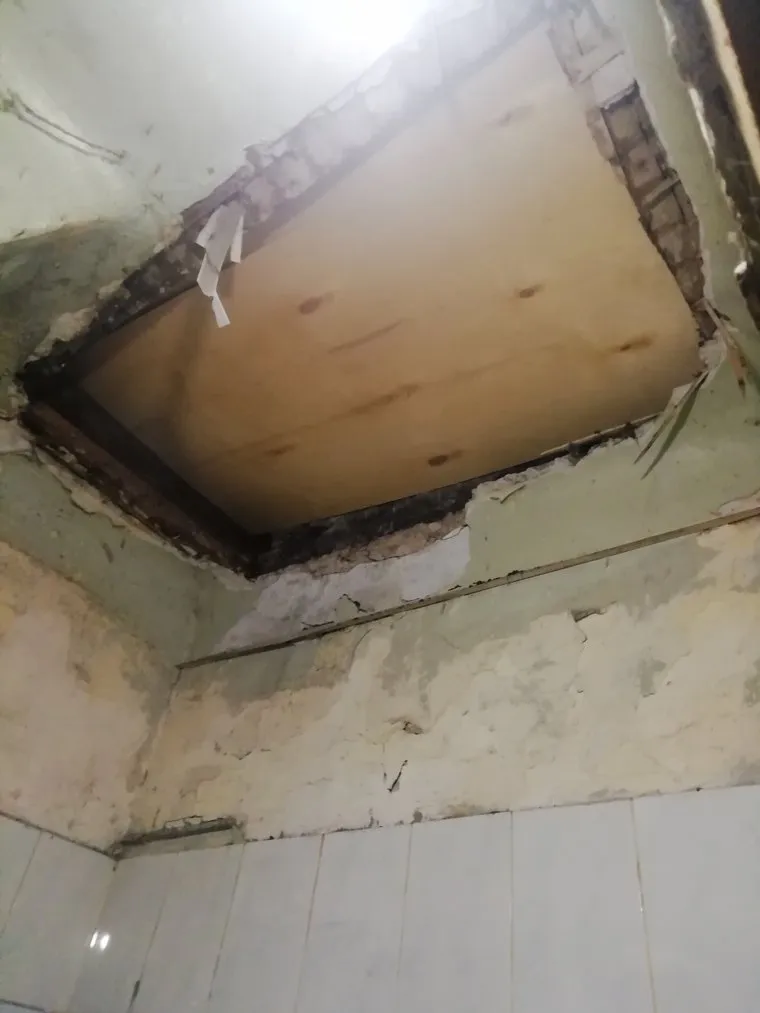 «УК наняли рабочих почистить снег с крыши, в итоге они провалились вместе с лопатами к нам в квартиру в туалет», — написал анонимный пользователь, опубликовав снимки. В комментариях к посту появилась и видеозапись последствий инцидента. Позднее дыру в потолке двухэтажного дома в Кировском районе временно закрыли фанерой, пишут пользователи.