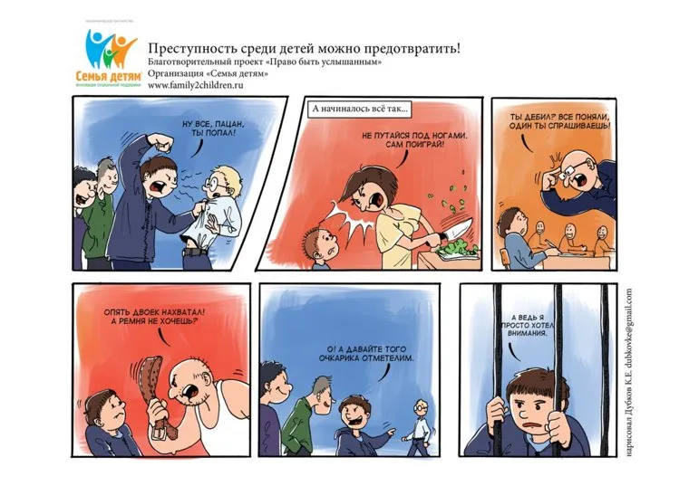 «Выставка нацелена на родителей и будет разделена на блоки по возрасту детей: 0 — 3 года, 3 — 7 лет, 7 — 12, 12 — 15 лет и 15-18, — рассказала «URA.RU» Лариса Бучельникова, руководитель АНО «Семьи детям». — В комиксе будут изображены одна или несколько проблем, связанных с безопасностью ребенка в том или ином возрасте, будут указаны проблема, статистика по ней, рекомендации, как можно ее решить, советы психологов, контакты, куда обращаться.