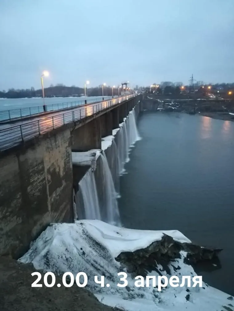 «Со вчерашнего дня начался перелив через гребень Сергеевского водохранилища. На текущий момент перелив составляет 16 см», — пишет автор поста. В подтверждение своих слов пользователь прикрепил несколько снимков, сделанных в разное время 3 и 4 апреля. На них заметно, что через гребень плотины с каждым днем проливаются все большие объемы воды.