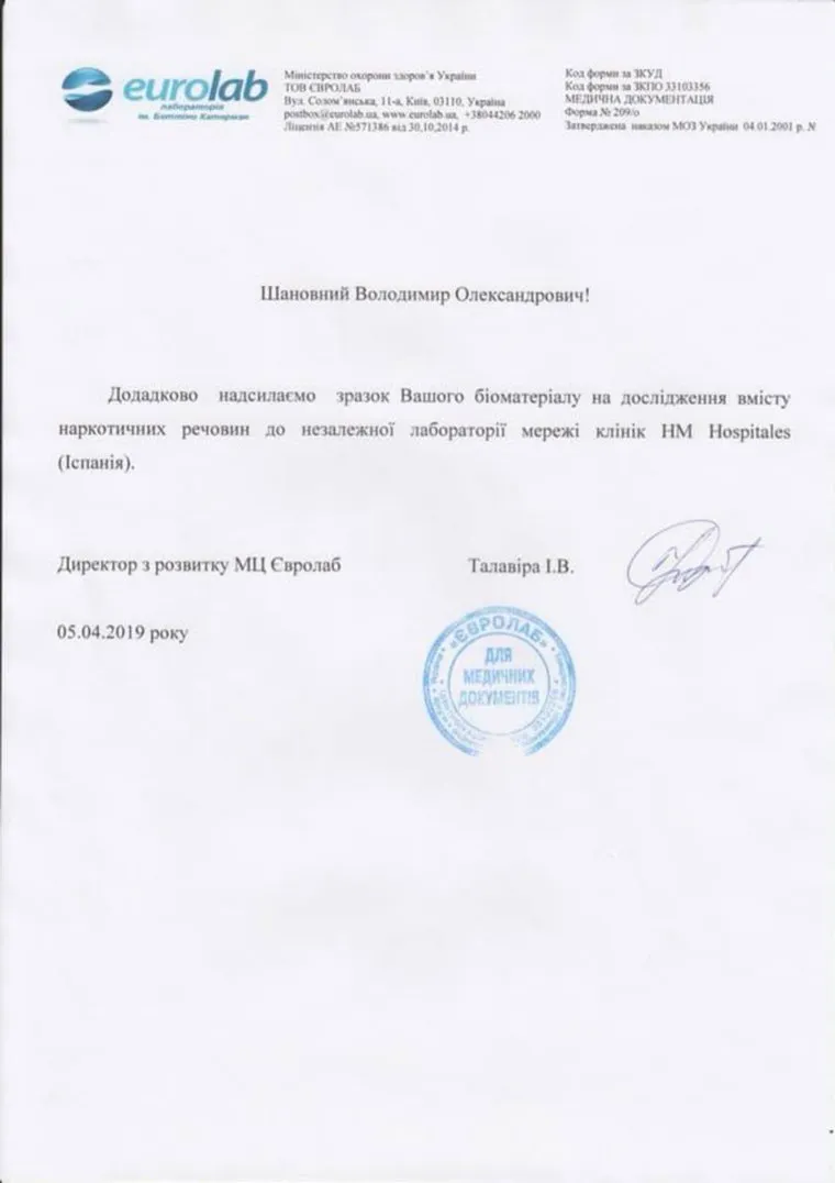 «Весна пришла, и мы сделали это вместе», — написал Зеленский в подписи к сканам результатов. В документах указано, что кровь шоумена проверяли несколько раз. Для максимальной прозрачности специалисты решили отправить проанализированные образцы в лабораторию в Испании, уточняет RT .