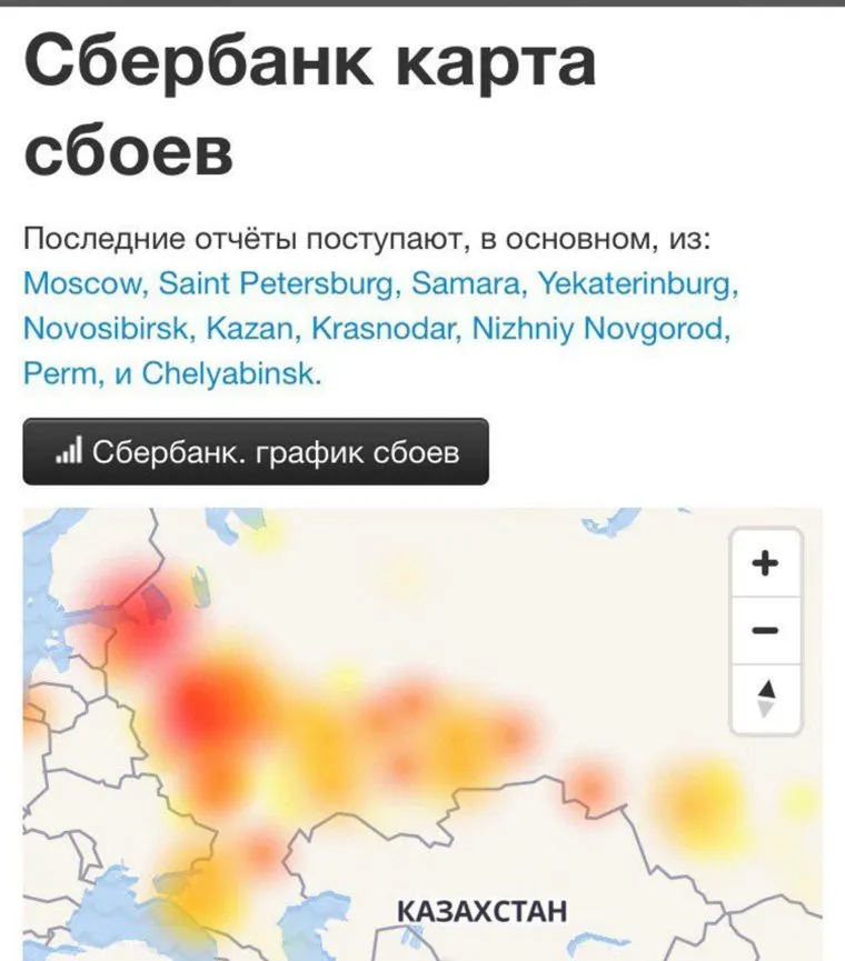 Согласно карте сбоев, 10 апреля произошла накладка в работе «Сбербанк-онлайн» в нескольких крупных городах, в том числе в Москве, Екатеринбурге, Челябинске, Перми, а также в Санкт-Петербурге, Казани, Краснодаре и Нижнем Новгороде. В Уральском банке Сбербанка России «URA.RU» подтвердили, что мобильное приложение не работает. Глобальный сбой в банке объяснили техническими причинами. «По техническим причинам ряд клиентов могут испытывать затруднения при проведении операций в Сбербанк Онлайн и через устройства самообслуживания банка», — отметили в пресс-службе банка. Там извинились перед клиентами и отметили, что специалисты «работают над устранением» неполадок. При этом добавили, что «все операции в отделениях банка проводятся в обычном порядке».