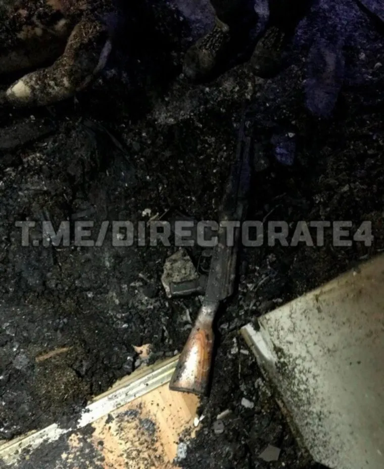 На фото видны трупы двух мужчин («URA.RU» не публикует их по этическим соображениям), оружие и, видимо, элементы бомбы. Ранее в управлении СК РФ по Тюменской области заявляли, что в доме ликвидированных террористов были обнаружены два автомата Калашникова и два самодельных взрывных устройства.