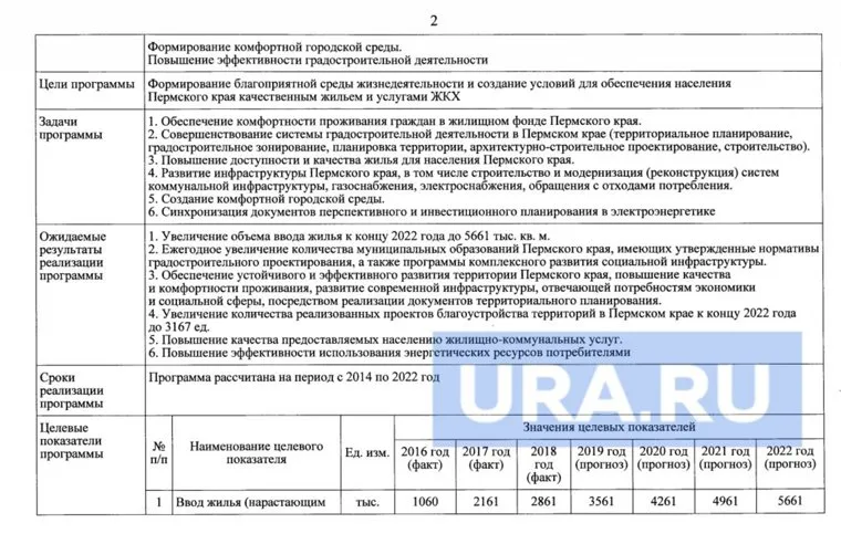 Выдержка из постановления правительства Пермского края № 271-п от 12 апреля 2019 года об объемах ввода жилья.