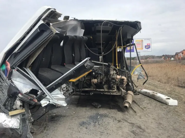 Под Тюменью грузовик снес пассажирский автобус. Среди пострадавших есть ребенок. ФОТО