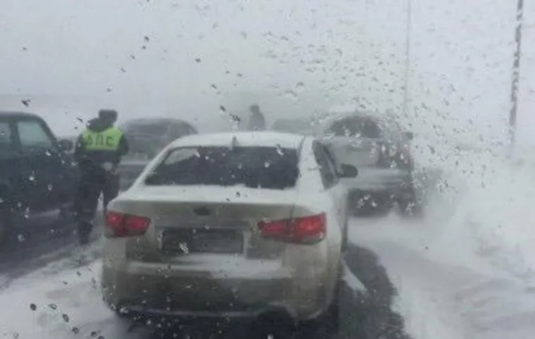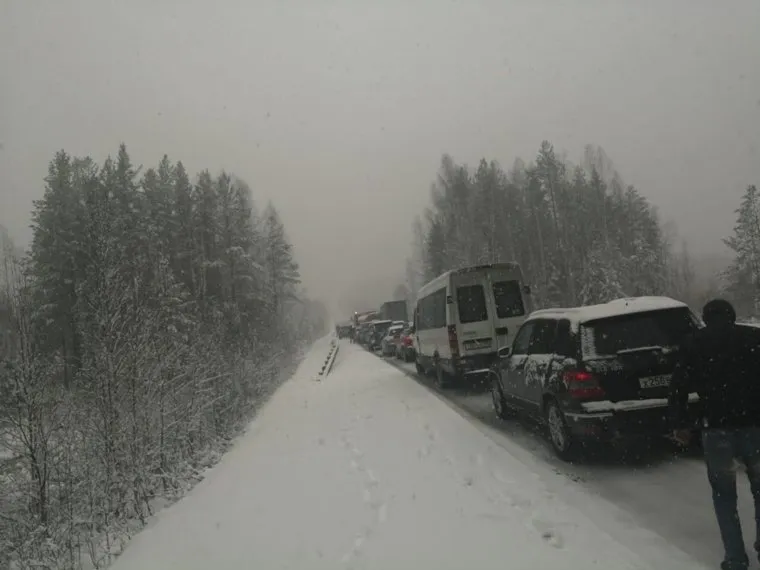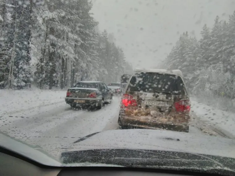 Огромная пробка образовалась на подъезде к Нижнему Тагилу из-за метели. ФОТО