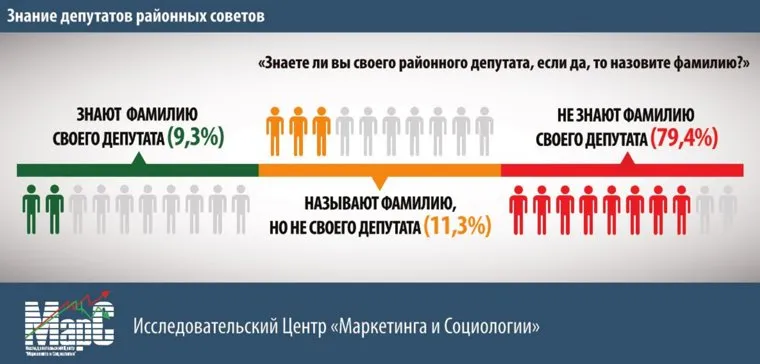 Авторы реформы МСУ к числу ее плюсов относят максимальное приближение народных избранников к населению. Вместо 37 депутатов, как это было раньше, в 2014 году выбрали 170 депутатов . Респондентам предложили вспомнить имя своего районного депутата. Назвали фамилию только 9,3%. 11,3% упомянули данные на другого депутата, в основном Госдумы. Остальные не вспомнили никого.