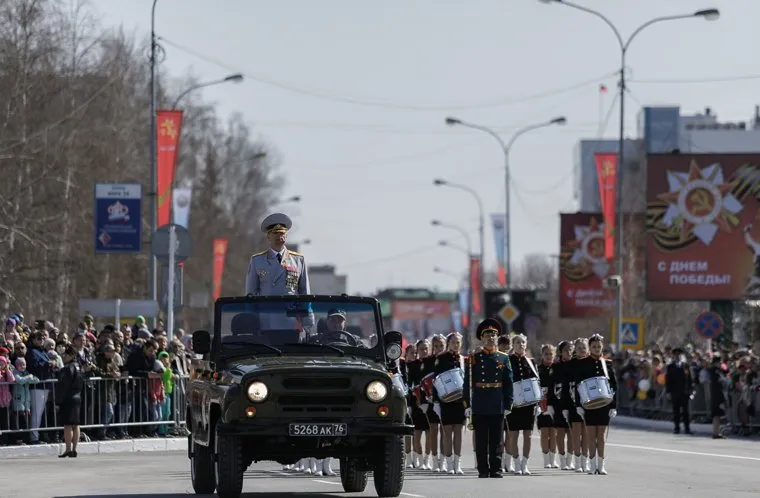 После поздравительного слова губернатора, начальник УМВД по ХМАО-Югре, генерал-майор Василий Романица дал старт главному праздничному шествию, и Парад Победы начался. По центральной улице Мира прошли все виды пехоты, а также тяжёлая техника.