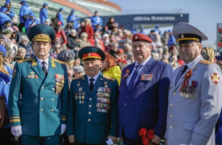 Еще один из заместителей Комаровой Андрей Зобницев (второй справа) пришел на парад чуть позже остальных в военной форме и с краповым беретом, чем вызвал бурное обсуждение других членов югорского правительства. «Это тот самый берет? Я даже не знал, что он служил», — заинтересовался кто-то на трибуне.