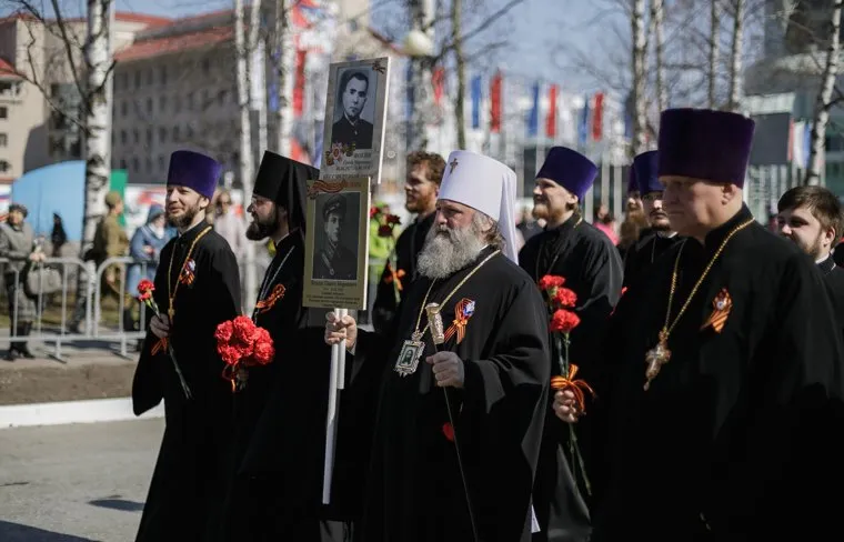 А жители, сформировавшись стройной колонной «Бессмертного полка», направились возложить цветы к мемориалу памяти — вечному огню. Кроме членов Югорского правительства во главе колоны собрались представители духовенств и силовых ведомств. Например, и. о. главы регионального СУ СКР Дмитрий Шерман, а также митрополит ХМАО Павел. Сразу после возложения цветов к мемориалу Комарова направилась в Нижневартовск.