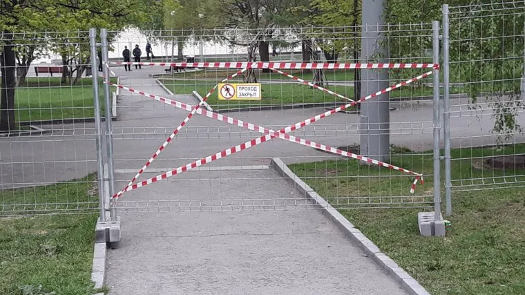 На фотографиях из соцсетей видно, что часть сквера, которую планируют отдать под застройку, окружена высоким забором. Ограждение проходит по тротуару.