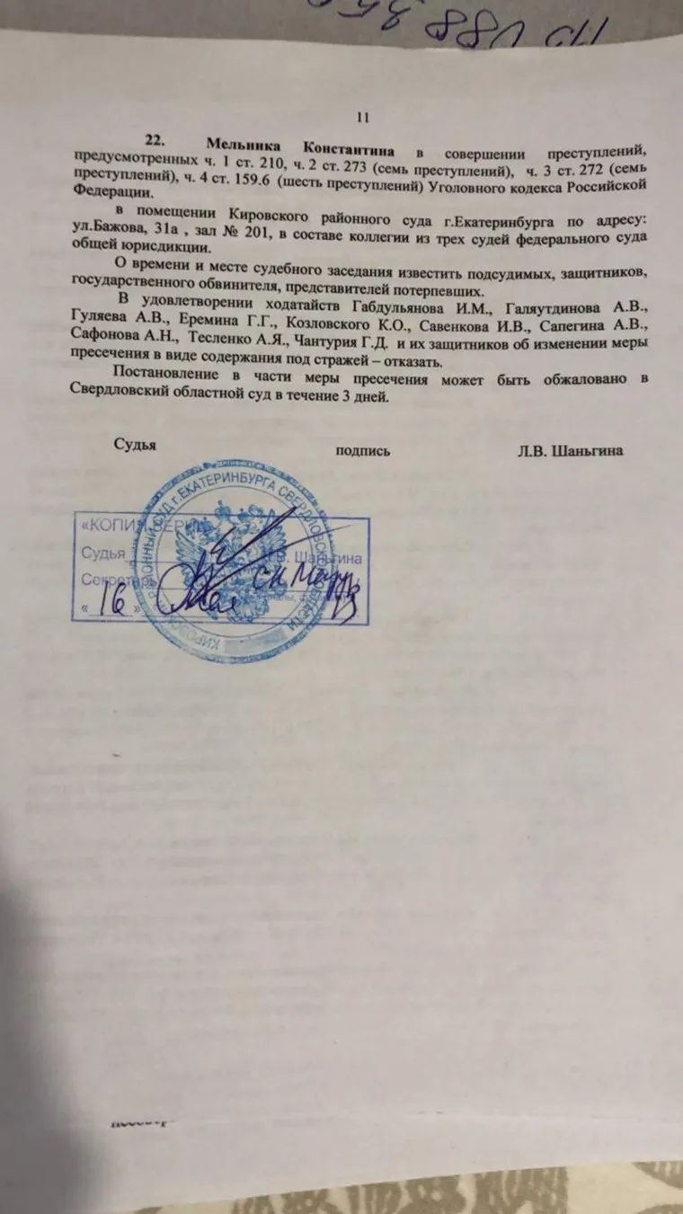 Дело хакерской группировки Lurk будет рассматривать тройка судей. Такое решение приняла накануне судья Кировского суда Екатеринбурга Лариса Шаньгина в ходе предварительного заседания по делу, удовлетворив ходатайство защитников и подсудимых. Об этом «URA.RU» сообщила Ольга Кезик — адвокат лидера группировки Константина Козловского.
