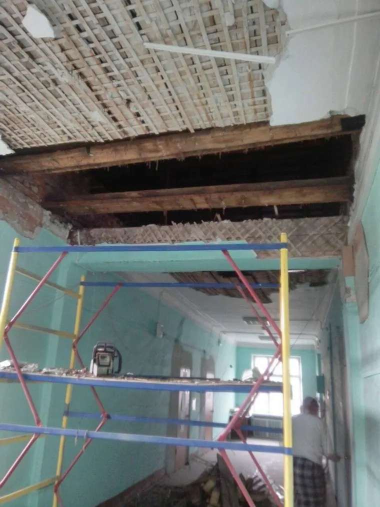 В 2017 году Административно-техническая инспекция Кургана провела обследование этого здания, расположенного по улице Куйбышева, 49. «Установлено недопустимое состояние наружных несущих стен здания», — сообщили «URA.RU» в пресс-службе городской администрации. 13 мая строители приступили к усилению наружных стен стальными обоймами. «В процессе выполнения подрядчиком ремонтных работ на объекте выявлены скрытые дефекты в виде деформации деревянных элементов ферм», — рассказали в мэрии.